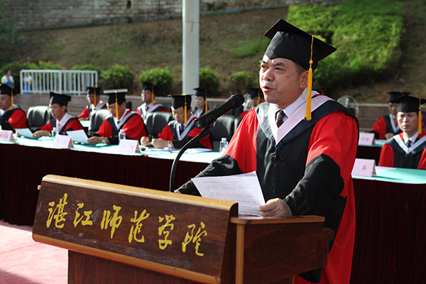 罗海鸥院长在典礼上作了热情致辞。罗院长认为,同学们在学校的四年,也是国家、高等教育及学校发生显著变化的四年。四年来,学校各项工作不断地改革、改进和改善,在人才培养、学科建设、科学研究、师资队伍、对外交流、内部管理、校园环境和条件建设等方面都有明显的改变,取得不少标志性成果。这都证明了湛江师范学院是一所古老而又充满朝气、蒸蒸日上的学校,是一所自强不息、勇于进取、拼搏向上的学校,是一所存在不足、有待完善、前途光明远大的学校。罗院长还指出,“湛江师范学院”这一校名已完成她的历史使命,学校将进入“365bet.com”的新时代。在校名更新之际,希望同学们把母校的精神和优良传统带到新的岗位上去,服务国家和人民,创造更多的骄人业绩,为母校争光。为此,罗院长寄语毕业生:一要求诚不求诈。把诚信作为做人处事的原则和道德要求,实事求是,不事虚妄;做到忠诚发乎心、信效表乎外。二是负责不推责。无论在什么地方,从事什么工作,都要认真负责、精益求精、敢于担当。三是坚持不放弃。坚守自己的理想信念,不随波逐流,勇于面对问题,不怕困难,百折不饶,必将走向成功的彼岸。